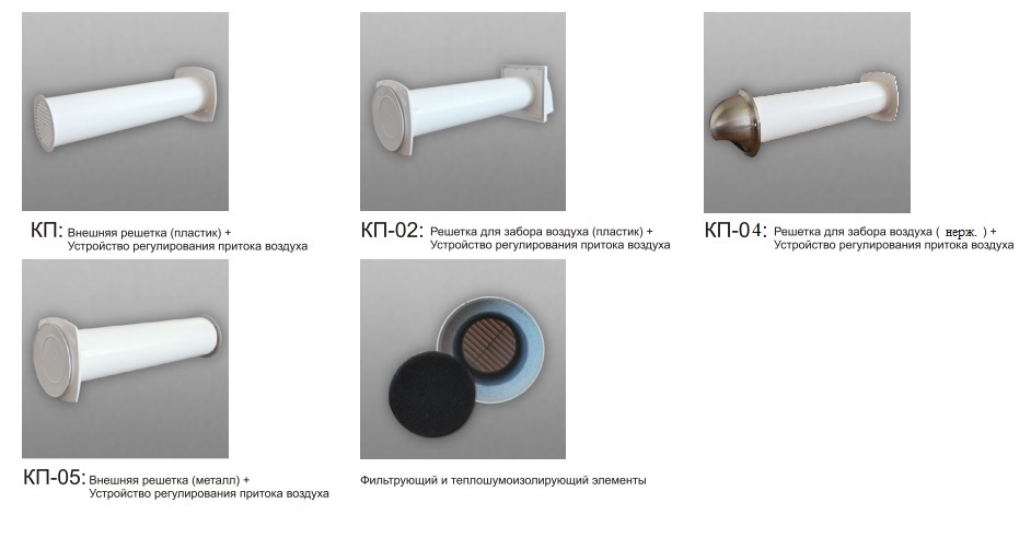 Комплектация - Решетка для забора воздуха (пластик), Устройство регулирования притока воздуха, фильтрующие и теплошумоизолирующие элементы (25 см)